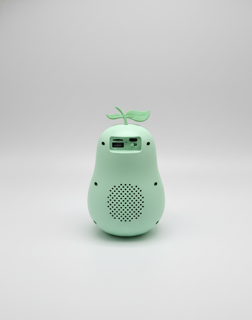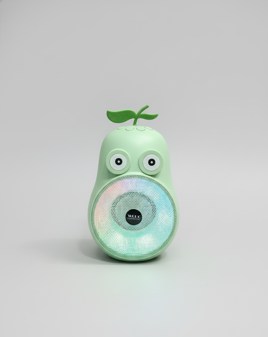 Cute pear-shaped Bluetooth speaker with powerful deep bass, colorful LED lights and USB/SD card support. Perfect for music, parties and gifting.